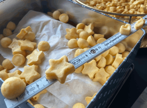 Üblicherweise kommen die Packungen mit gemischten Leckerlilly Größen. ABER - wenn du ein "richtiger" Hund bist, oder noch ein kleines Puppy, ooooooder gar ein Kätzchen, kein Ding! Es kommt in die Tüte, was du ins Maul bekommst. Einfach bei der Bestellung Bescheid sagen, klein oder groß. Wenn du nix sagst, bleibt's beim Misch-Tütchen.
